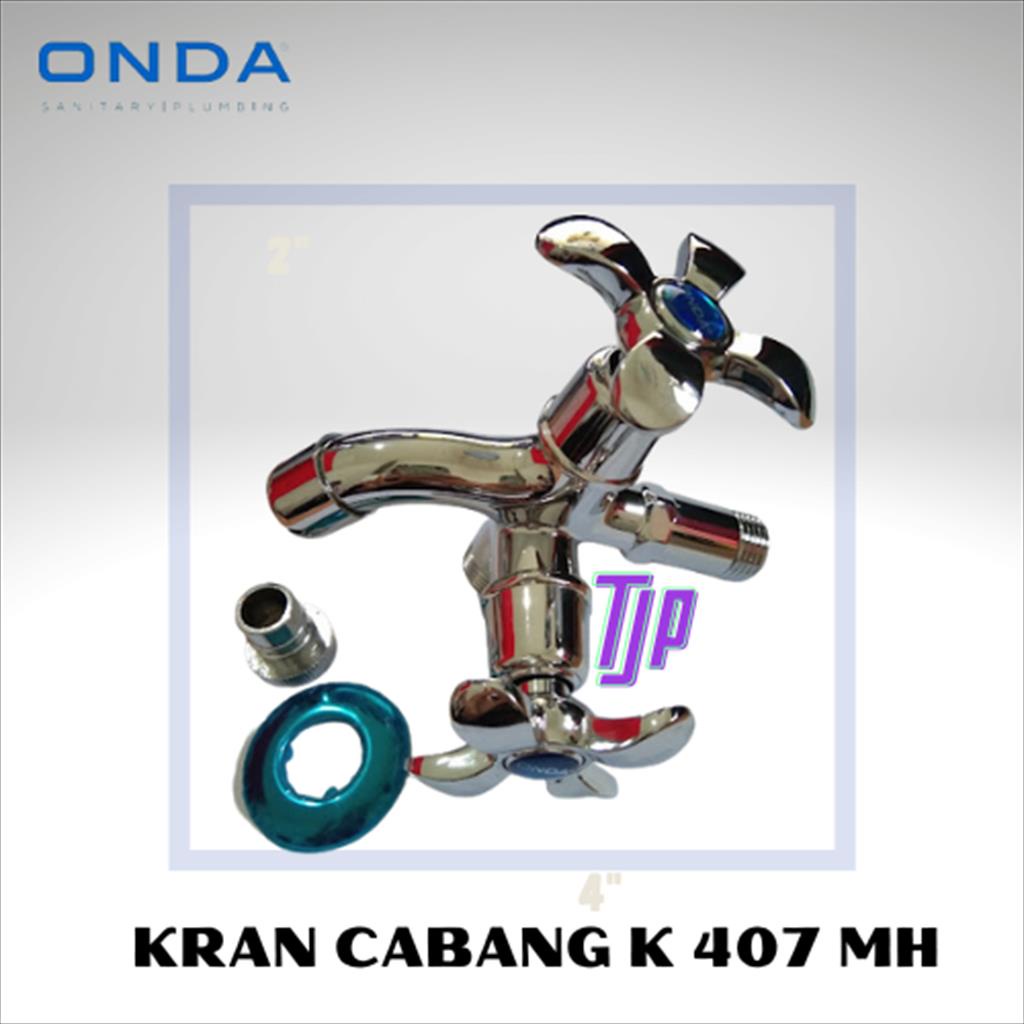Onda Kran Cabang Type : K 407 MH Merk : ONDA Ukuran : 1/2" Material : ABS Dimensi : 138mm x 78mm x 103mm ? Cartridge berbahan kuningan (bukan plastic) sehingga lebih awet (tidak mudah doll dan anti bocor) ? Finishing chrome 3 lapis sehingga lebih tahan lama