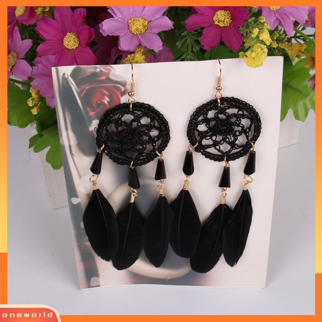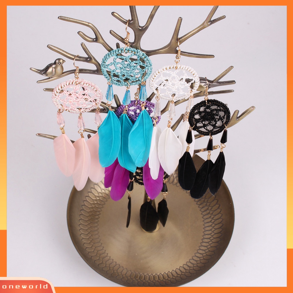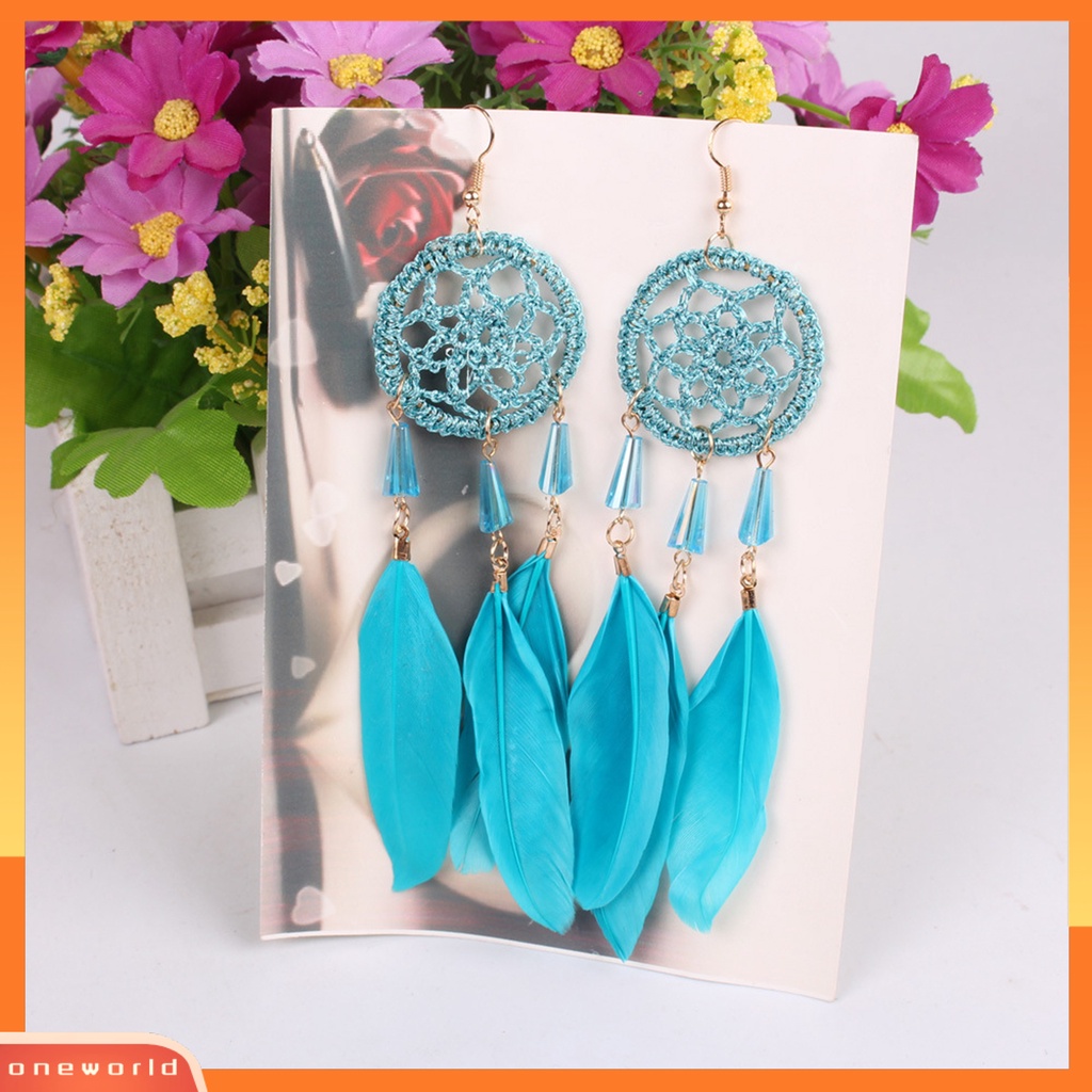 Detail [ONE] 1pasang Anting Kait Gaya Etnik Geometris Buatan Tangan Liontin Temperamen Dekorasi Aksesori Dreamcatcher Vintage Boho Buatan Bulu Rumbai Anting Aksesoris