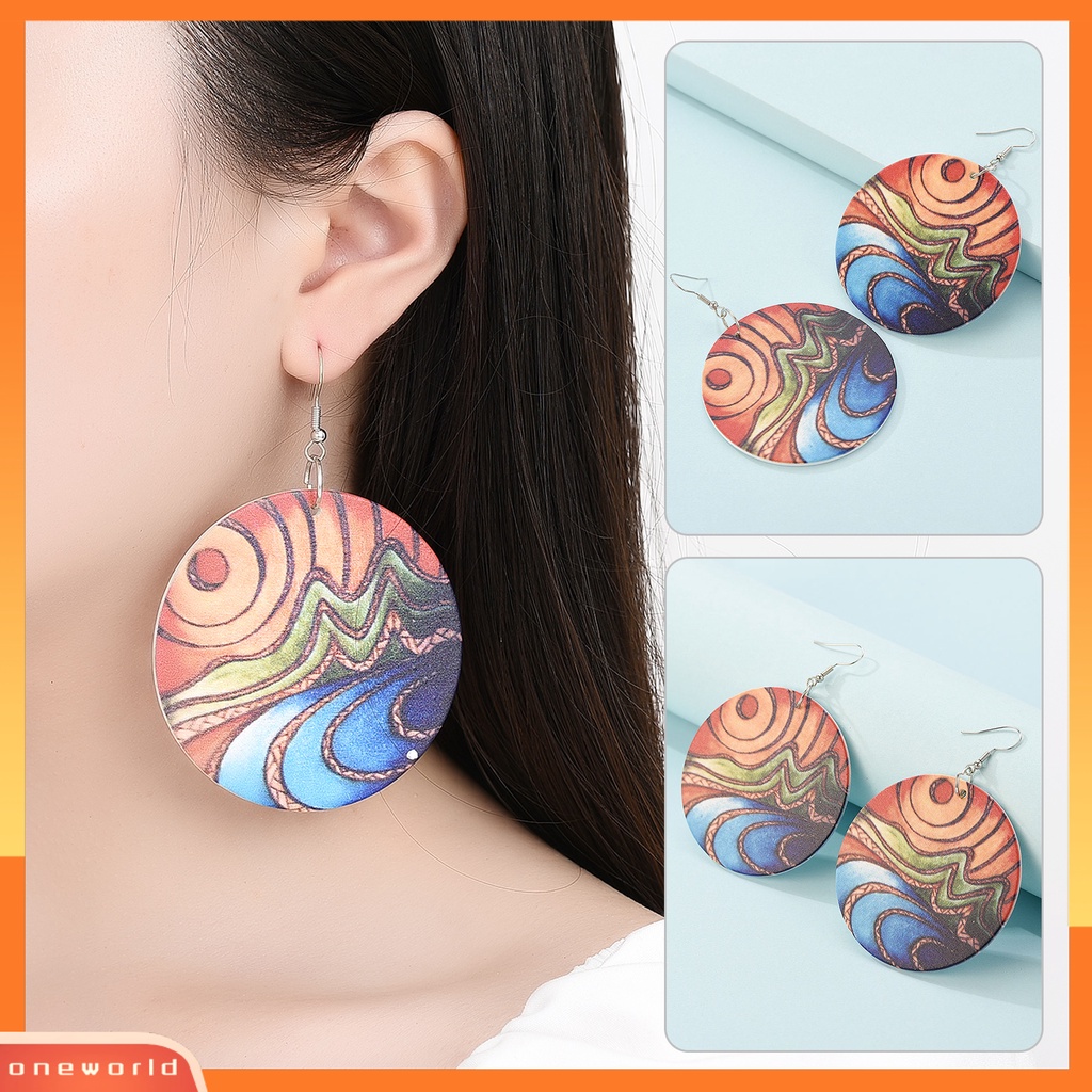 Detail [ONE] 1pasang Anting Kait Geometris Bulat Berlebihan Kepribadian Besar Hadiah Hypoallergenic Lukisan Abstrak Drop Earrings Fashion Perhiasan