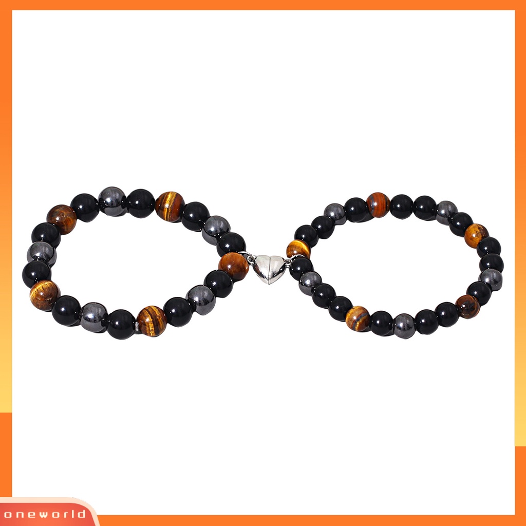 [ONE] 1pasang Gelang Pasangan 3warna Tiger Eye Batu Jarak Pasangan Hadiah Valentine Vintage ic Cinta Hati Yang Sesuai Dengan Gelang Perhiasan Aksesori