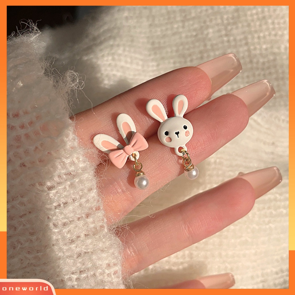 Detail [ONE] 1pasang Pink Ikatan Simpul Kelinci Studs Earrings Mutiara Imitasi Lucu Bentuk Hewan Wanita Gadis Remaja Anting Fashion Perhiasan Hadiah