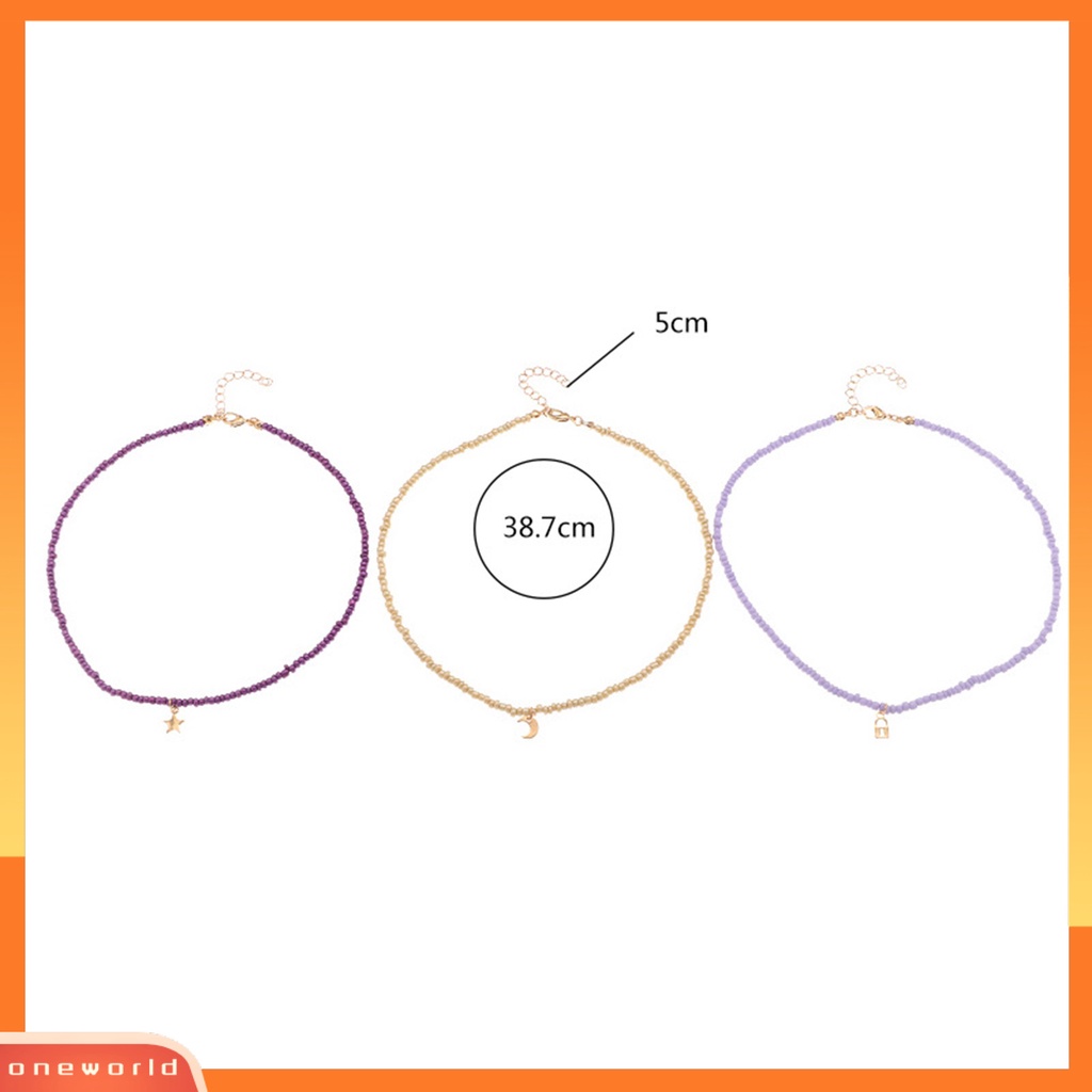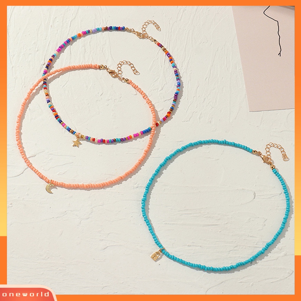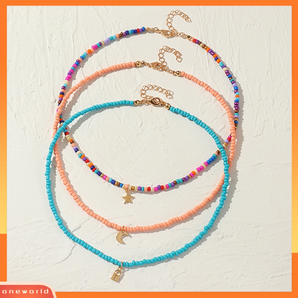 [ONE] 3pcs/set Manik-Manik Choker Warna-Warni Ramah Kulit Handmade Kalung Liontin Bulan Bintang Untuk Pakaian Sehari-Hari
