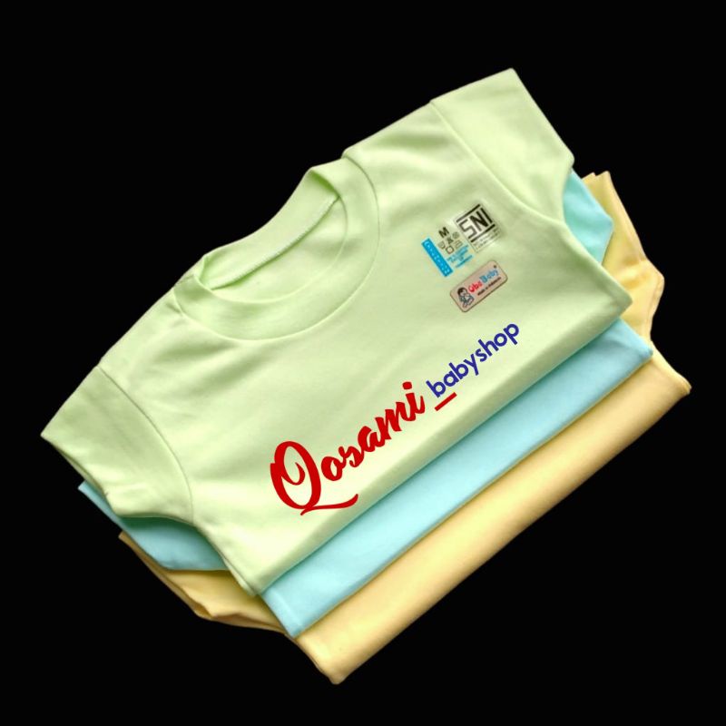 Detail ONE BABY 3 pcs Kaos Polos Oblong Pendek Bayi Khusus Warna BIRU, HIJAU, KUNING Uk, S, M, L, XL SNI