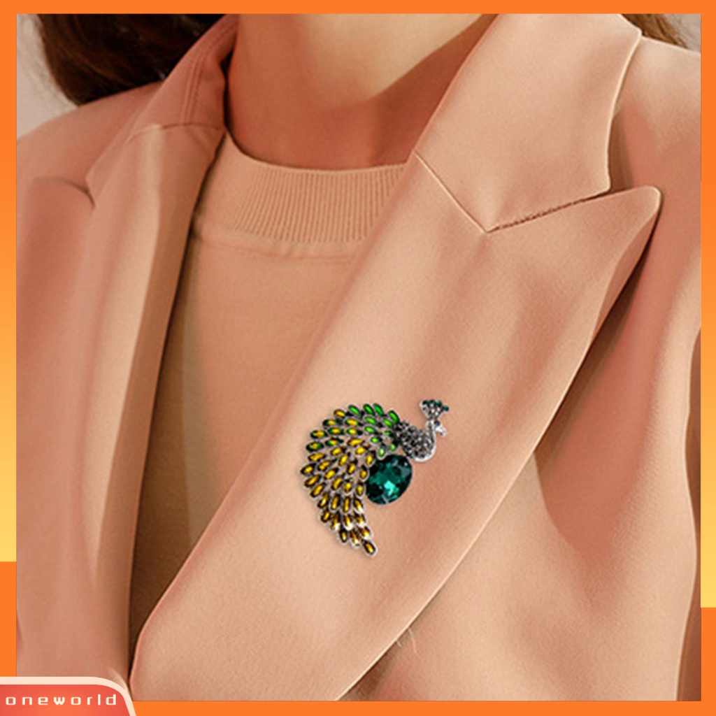 [ONE] Bros Pin Merak Berwarna Berlian Imitasi Aksesori Electroplating Tahan Lama Kerah Bros Pakaian Dekor