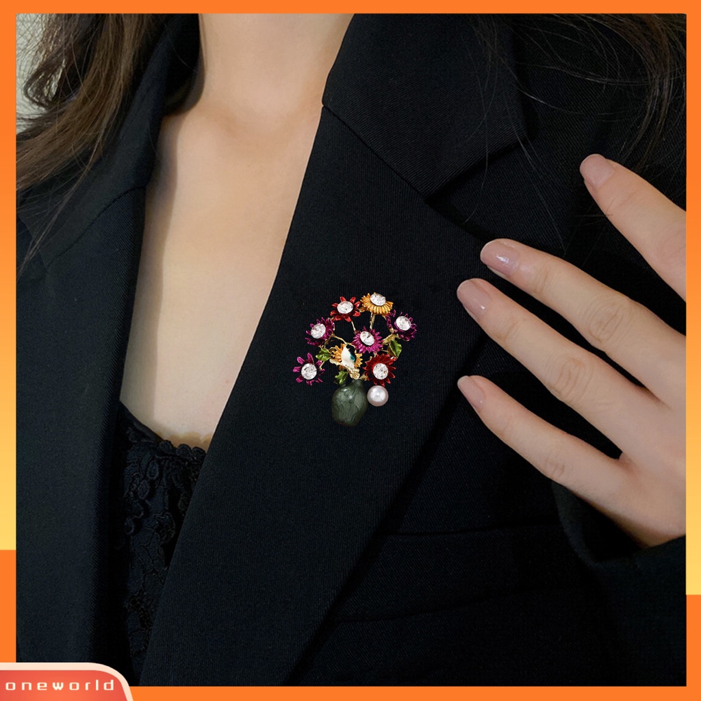 Aksesoris Fashion > Aksesoris Tambahan > Bros & Pin > [ONE] Bros Pin Mutiara Imitasi Hias Bentuk Bunga Matahari Minyak Proses Tetes Temperamen Pakaian Yang Sesuai Dengan Colorfast Elegan Kristal Imitasi Bunga Bros Perhiasan Aksesoris
