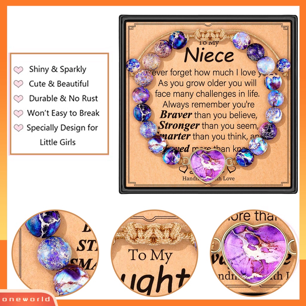 Detail [ONE] Cinta Hati Faux Opal Gelang 8mm Ungu Batu Manik Adjustable Handmade Braided Tali Wanita Gadis Cucu Putri Keponakan Kakak Hadiah Ulang Tahun