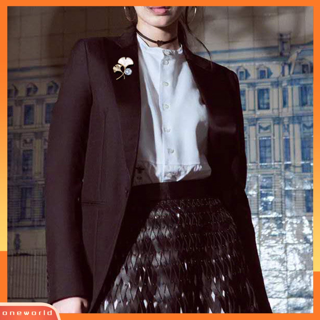 Aksesoris Fashion > Aksesoris Tambahan > Bros & Pin > [ONE] Ginkgo Daun Bros Gaya Perancis Elegan Temperamen Mungil Berlian Imitasi Daun Berbentuk Setelan Bisnis Kerah Pin Fashion Perhiasan