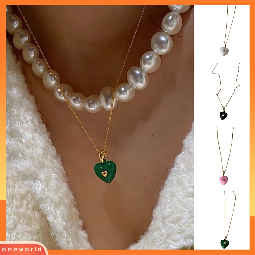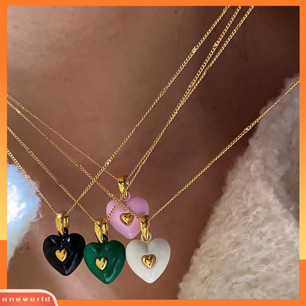 Detail [ONE] Indah Rantai Tipis Semua Pertandingan Wanita Kalung Oil-dripping Enamel Hati Liontin Kalung Perhiasan Aksesoris