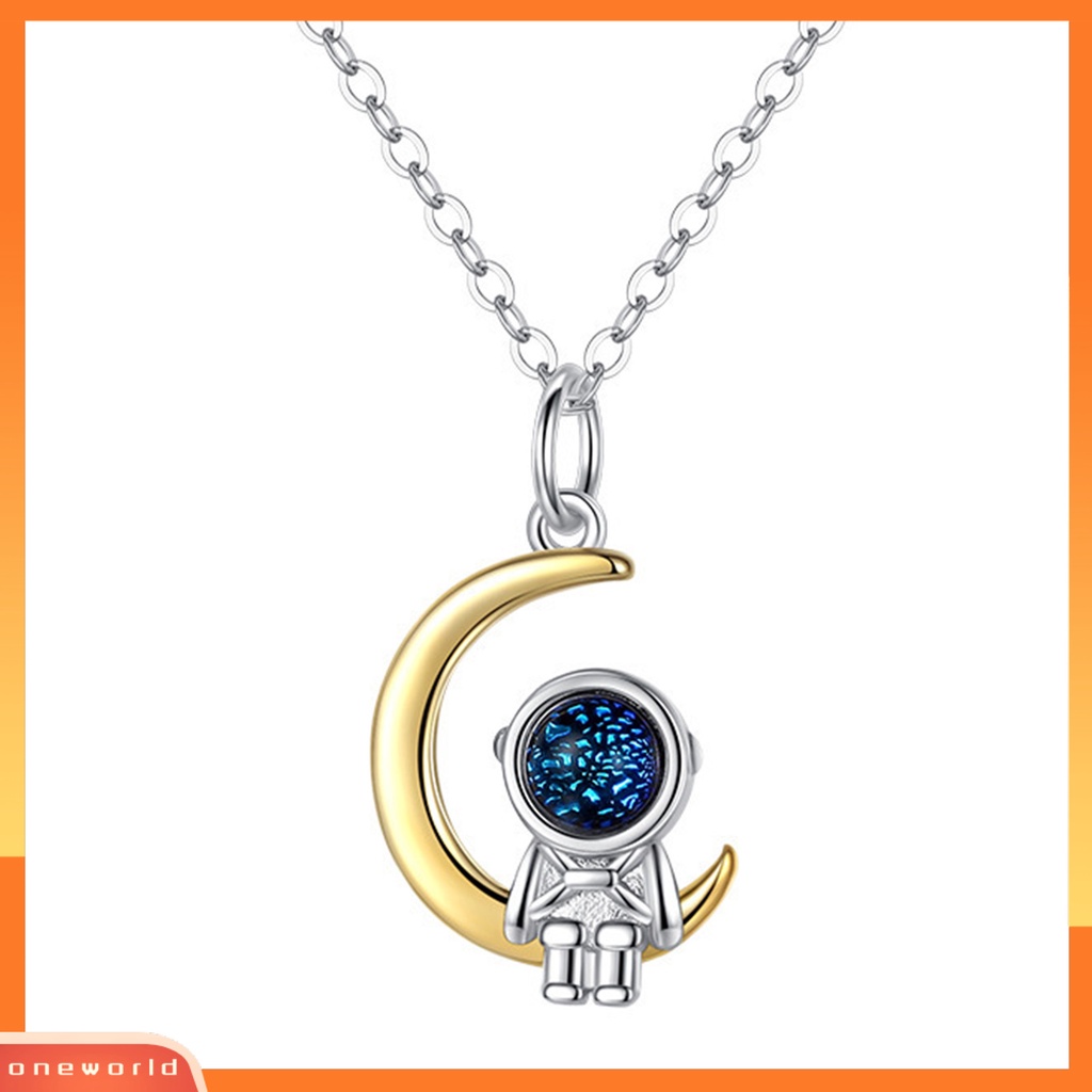 [ONE] Kalung Pasangan Desain Baik Batu Glasir Berwarna Fashion Perhiasan Romantis Astronot Bulan Bintang Klavikula Kalung Untuk Pacaran