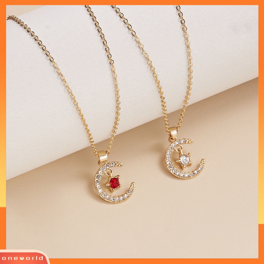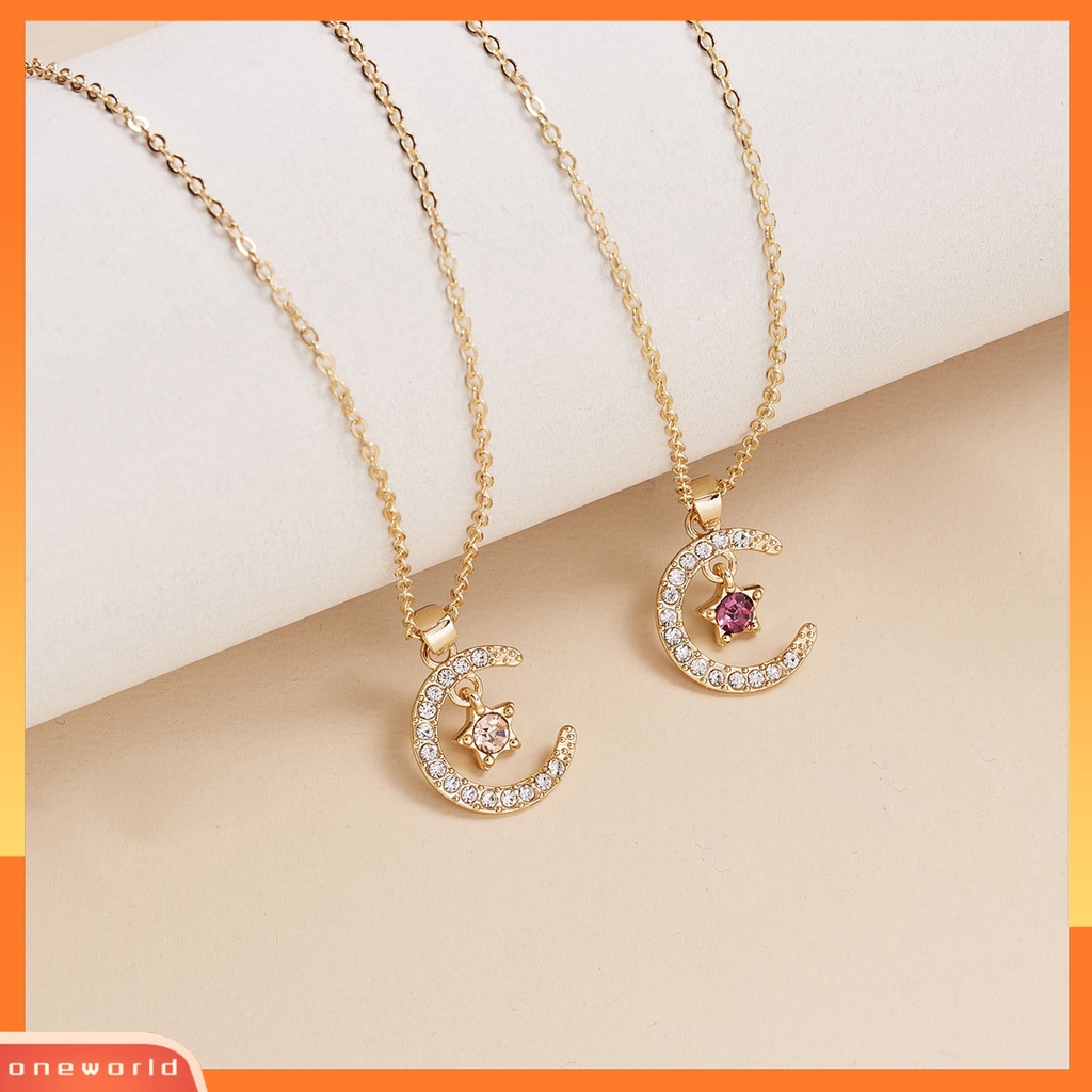Detail [ONE] Kalung Wanita Bentuk Bintang Bulan Berlian Imitasi Mengkilap Lady Necklace Untuk Hadiah
