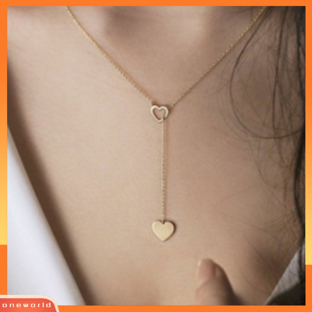 Detail [ONE] Kalung Wanita Warna Solid Bentuk Hati Rantai Liontin Lady Kreatif Untuk Pakaian Sehari-Hari