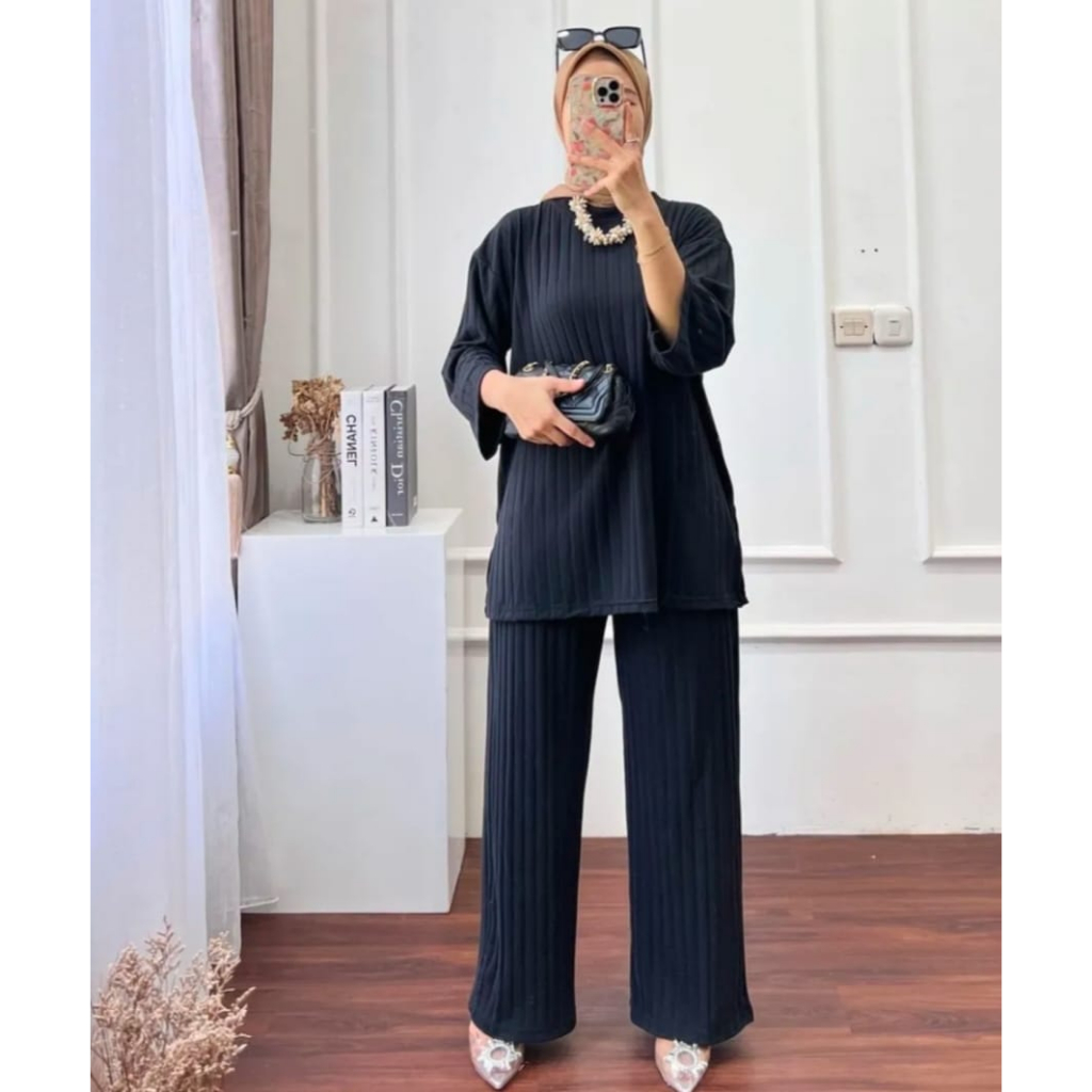 setelan wanita terbaru bahan kaos knit rajut import bahan tebal halus dan lembut adem nyerap keringat model cantik kekinian celana panjang kulot pinggang karet full muat sampai ukuran jumbo nyaman dipakai sehari-hari deskripsi lengkap ada digambar