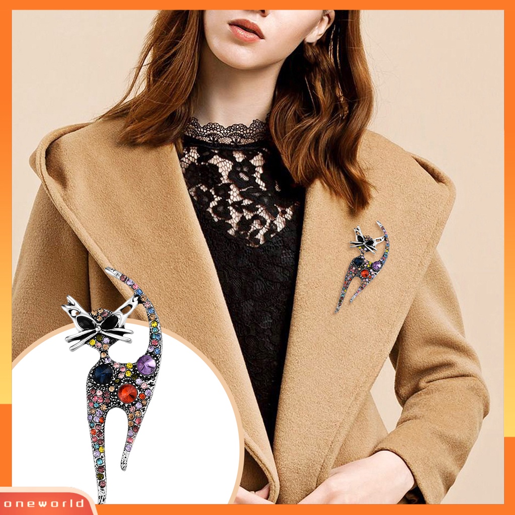 [ONE] Lady Bros Gaya Retro Desain Kucing Penuh Berlian Imitasi Electroplating Hias Pakaian Yang Sesuai Dengan Temperamen Wanita Alloy Hewan Bros Pin Aksesoris Pakaian