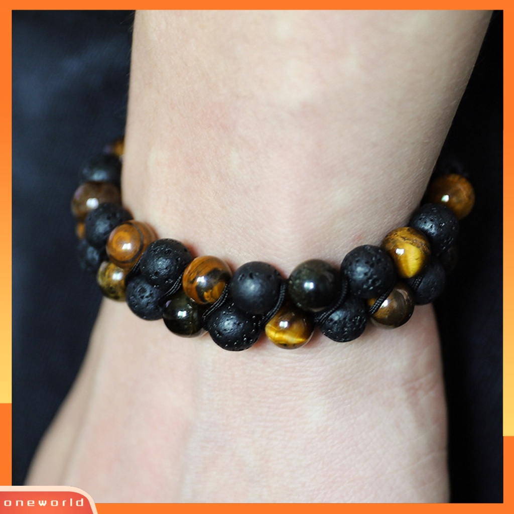 [ONE] Manik-manik Gelang Dikepang Tali Double Layer Vintage Adjustable Serut Menghias Perhiasan Tiger Eye Faux Rock Stone Pria Kecemasan Gelang Untuk Kehidupan Sehari-Hari