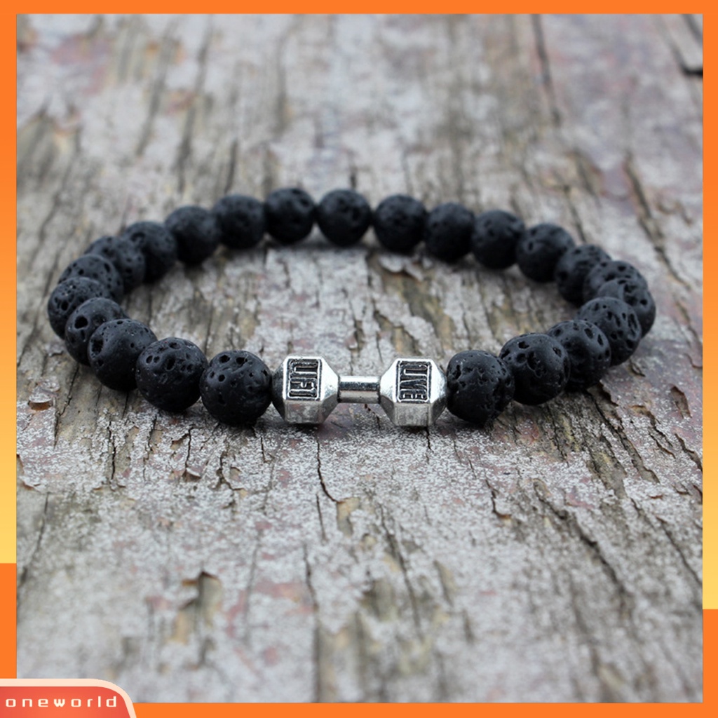 [ONE] Pria Gelang Dumbbell Dekorasi Vintage Matte Finish Handmade Elastis Dekorasi Aksesori Bulat Longgar Manik-Manik Batu Gelang Untuk Pakaian Sehari-Hari