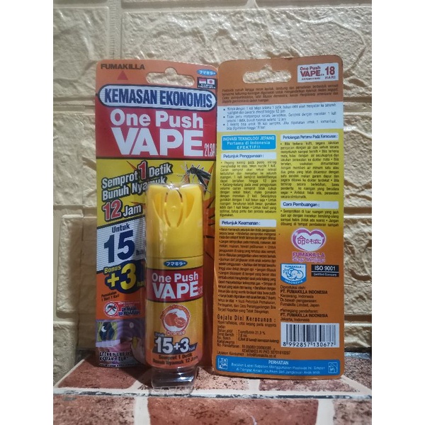 FUMAKILLA VAPE One Push Spray anti Nyamuk ( Fragrance Orange ) : Aroma :orange Kemasan: 15hr +3hr * Dapat membunuh , Kecoa Nyamuk & Lalat * Membunuh Nyamuk Penyebab Demam Berdarah