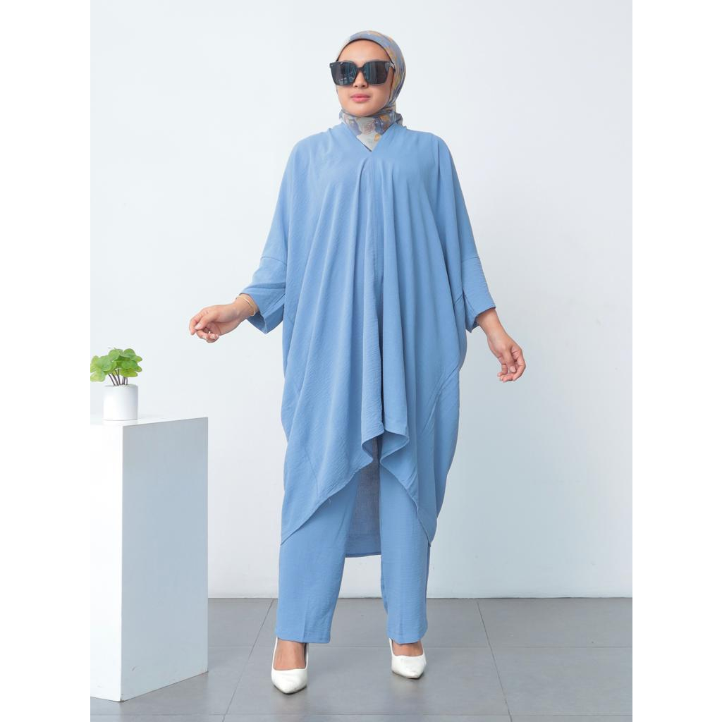 • Bahan Crinkle ❤️ • Cuttingan unik • Model kerah v • Detail saku kanan kiri di celana • Bisa digunakan terpisah