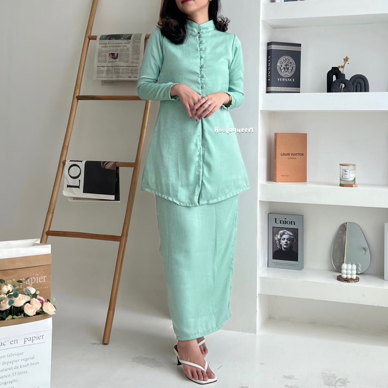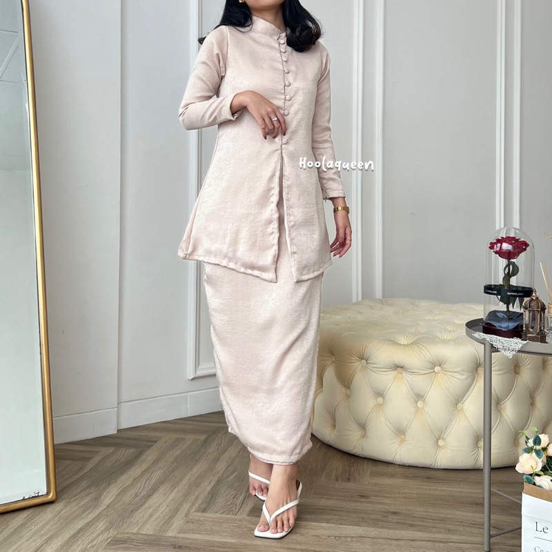 Hoolaqueen - One Set Button Santorini - Set Kurung Melayu - One Set Satin - Melayu Outfit