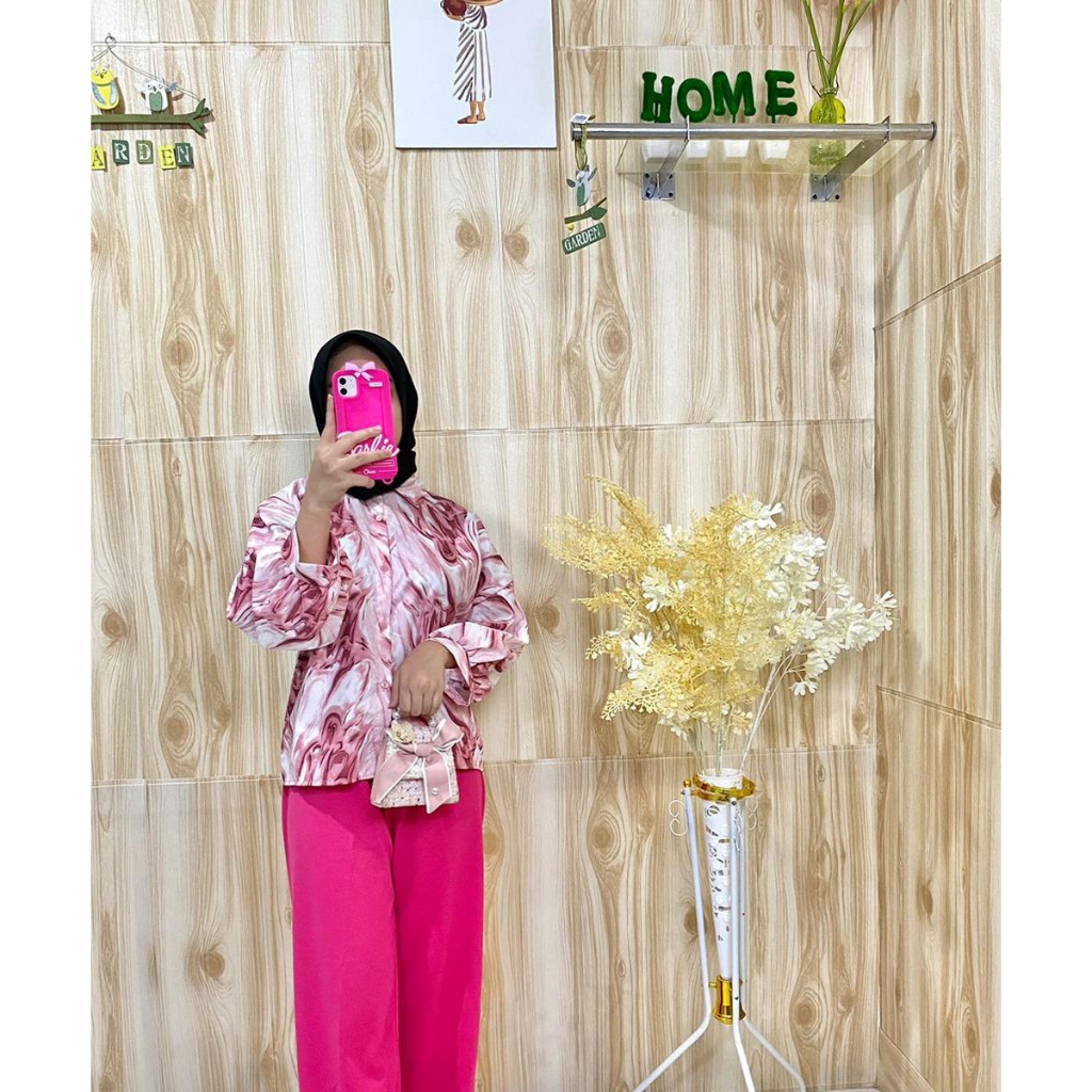 Detail One Set Carlotta Marble Puffy / Setelan Wanita Kekinian Atasan+Celana