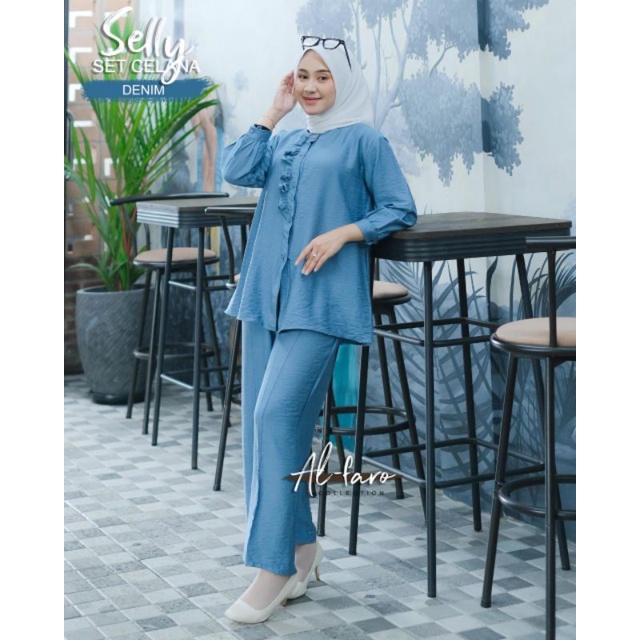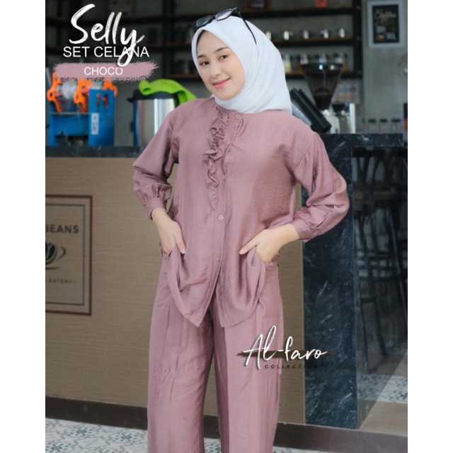 SELLY SET. CELANA Alfaro -Atasan LD.105 PB.110 -Celana Panjang Celana 100 Lingkar Pinggang 28, up 36 (melar karet) matt. POLO LINEN ADEM JATUH TIDAK MENERAWANG