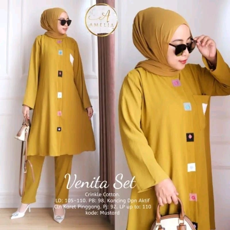 SELAMAT DATANG di toko kami ๐๐ (DIMOHON MEMBACA DESKRIPSI TERLEBIH DAHULU) Deskripsi produk : โ Bahan Mat. crinkle Premium Tebal halus adem tidak nerawang anti luntur & nyaman di pakai โ Setelan VENITA SET *LDยฑ110 cm * P. celana 92-95 cm * PB : 98 cm โข BUSUI Serian warna : PINK ROSE, BLACK, SAGE GREEN, LILAC, MUSTARD Melayani grosir dan partai. untuk Pembelian grosir silakan chat. ๐ ๐ Order tanyakan stok dan konfirmasi warna terlebih dahulu karena barang cepat habis ๐ ๐ Sertakan pilihan warna di catatan (jika tidak akan dikirim warna random) Happy shopping kaka๐