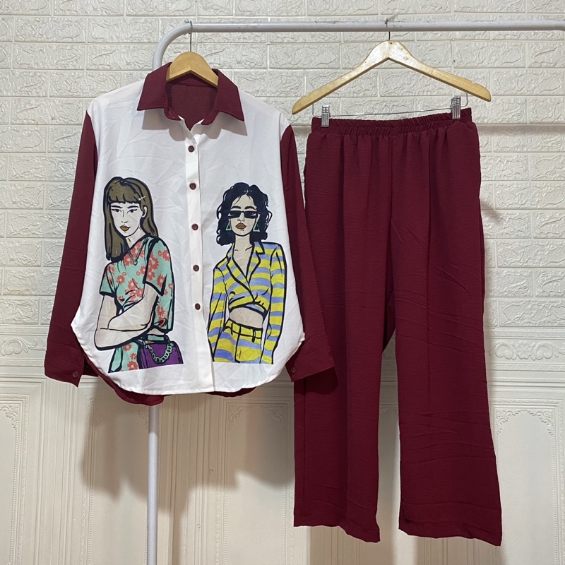 Pakaian Wanita > Set > Set Wanita > ONE SET CRINKLE SUBLIM PRINT JUMBO GAMBAR PEDRO SETCEL CHLOE BIGSIZE KANCING BUSUI FULL KARET MODELLANO