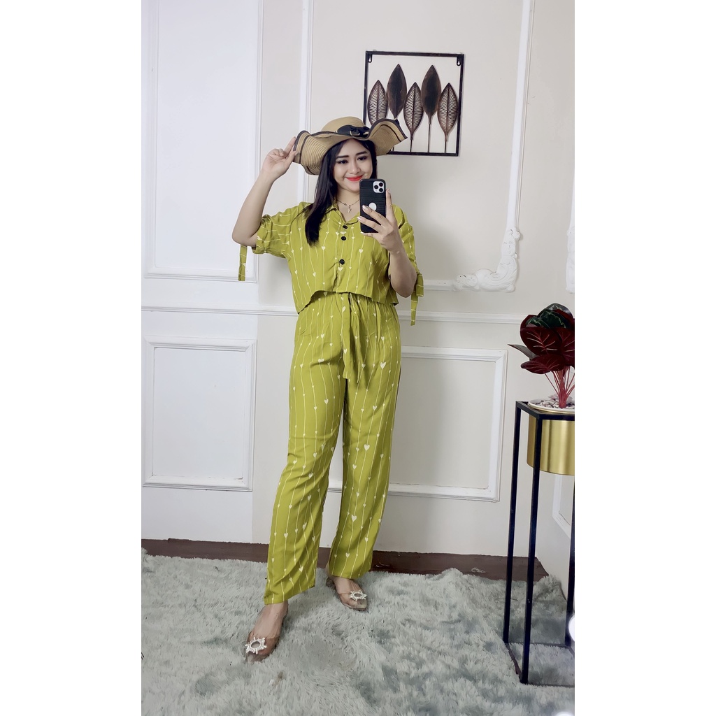 Detail ONE SET CROP LOVE - SETELAN PENDEK WANITA MOTIF LOVE - SETCEL CROP - BATIK RINATEX