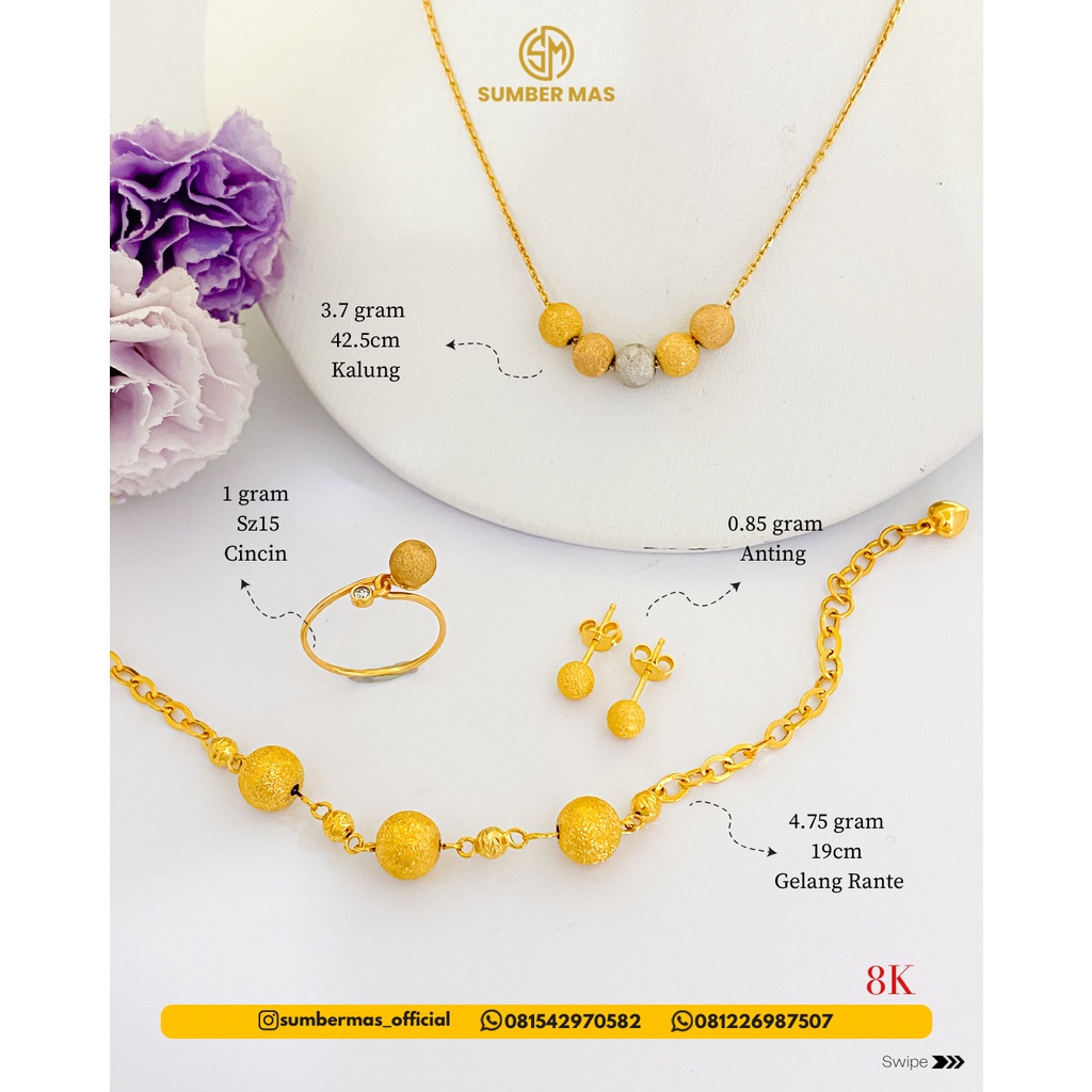 Nama Barang : ONE SET D*OR BALL Berat : 0.85gr - 4.75gr Variasi : GOLD Kadar Emas : 8K (375) Keuntungan Membeli Perhiasan di Toko Emas Sumber Mas