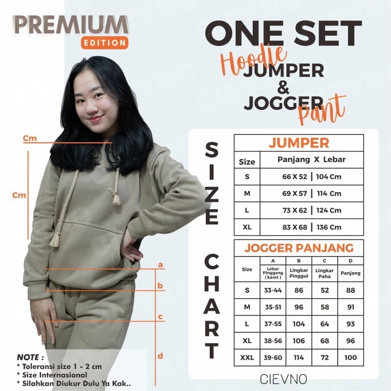 Detail ONE SET HOODIE JUMPER + CELANA JOGGER PREMIUM PEANUT BUTTER (PRIA&WANITA)