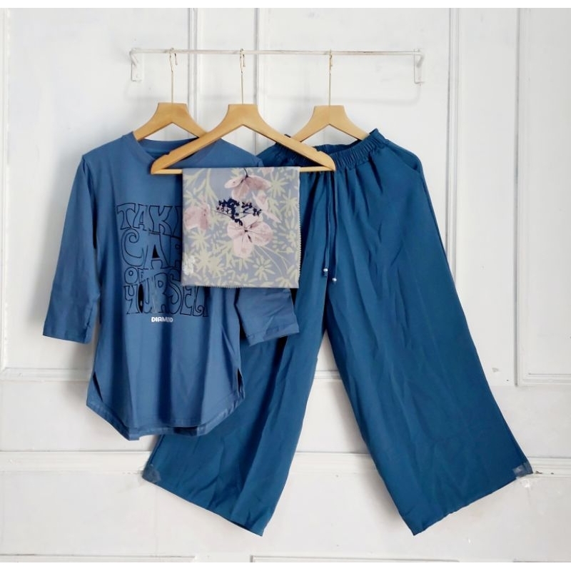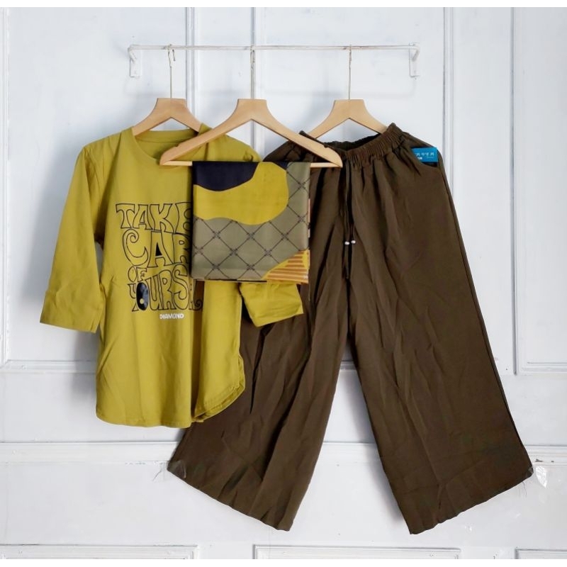 One Set Kaos Kulot Crinkle//Blouse Set Kulot//Atasan Set Celana