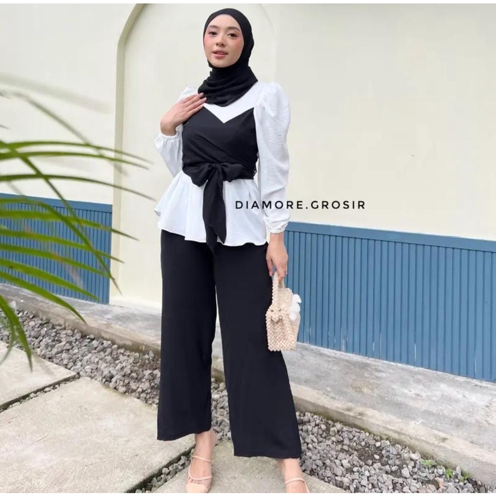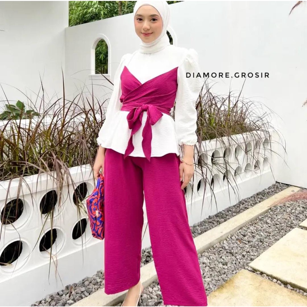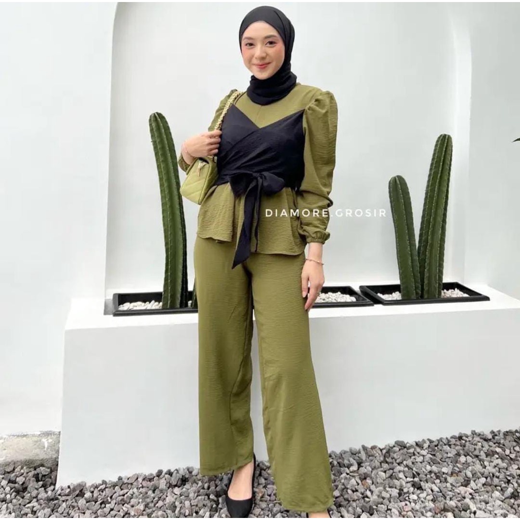 ONE SET (ATASAN + BAWAHAN) BAHAN CRINCLE AIRFLOW ATASAN LD 105CM PB 65CM BAWAHAN LPINGGANG MELAR SAMPAI 110CM LPAHA 70CM PJ 100CM