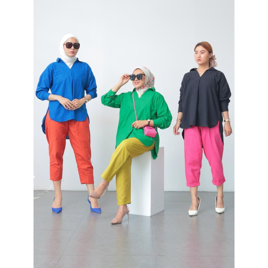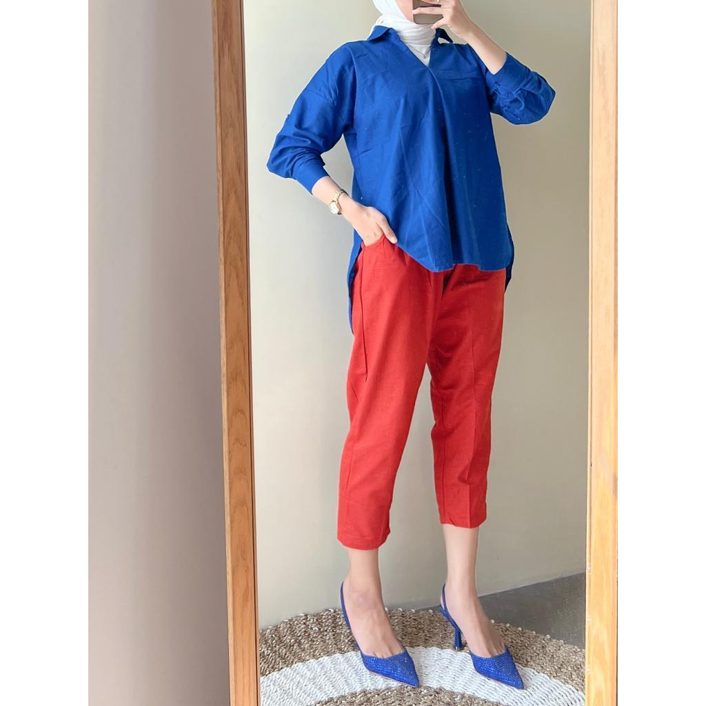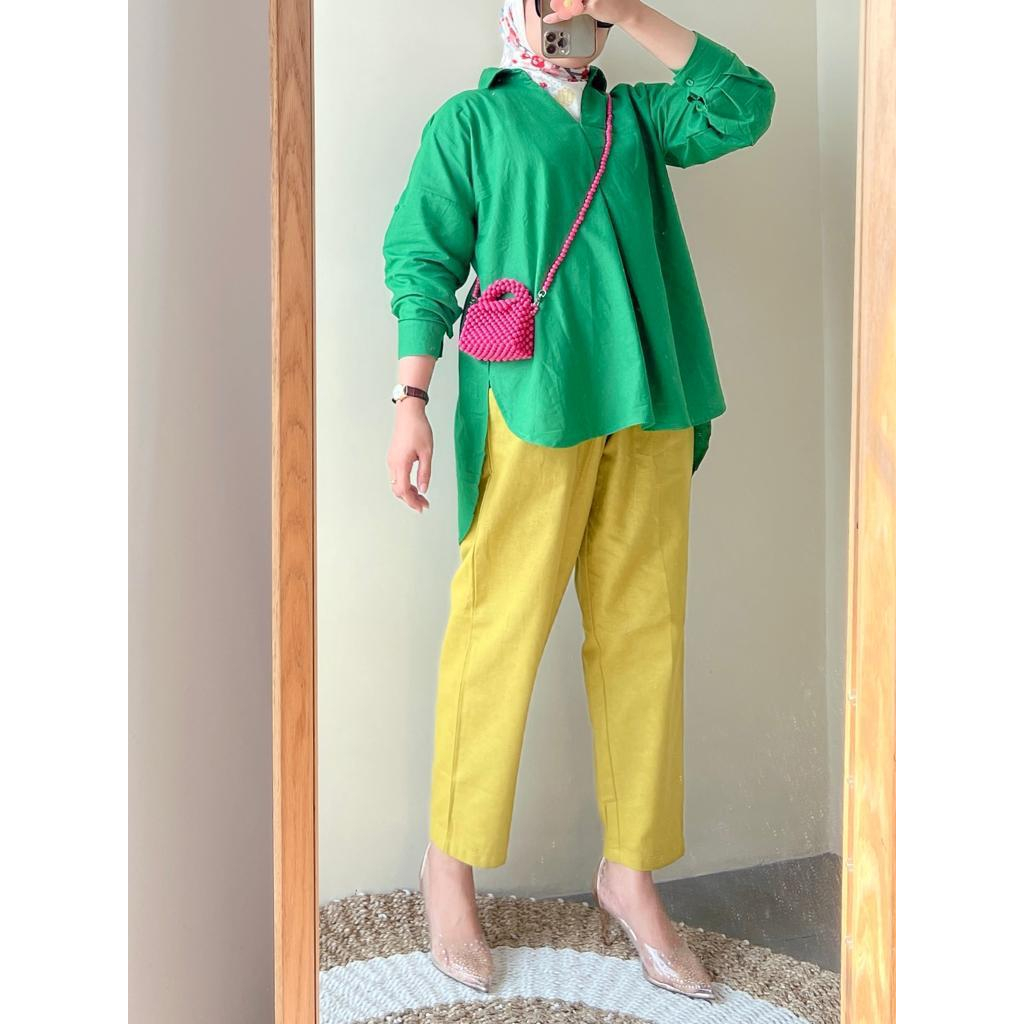 • Bahan Linen❤️🔥 • Detail panjang baju menutupi bokong 🥰 • Bisa digunakan formal dan non formal • Celana jumbo muat 80kg++ •Terdapat dua saku di celana • Bagian celana full karet • Bahan adem 💖