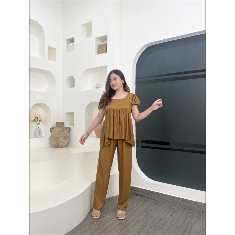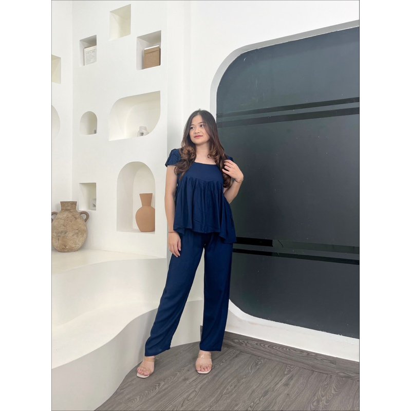bahan rayon premium adem one size fit xl kulot + atasan cakep