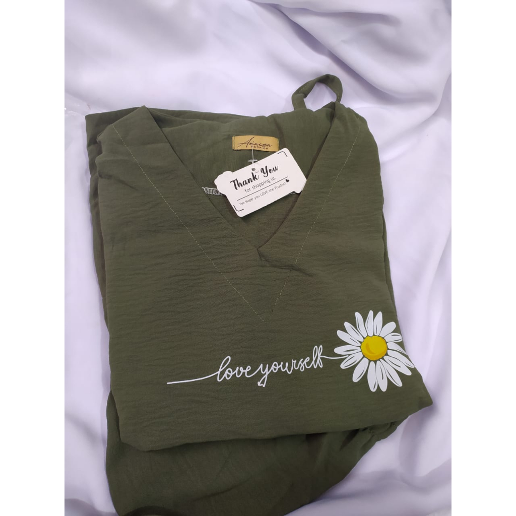 Detail One set NADINE annisa fashion setelan wanita cringkle airflow sablon bunga dan love terbaru