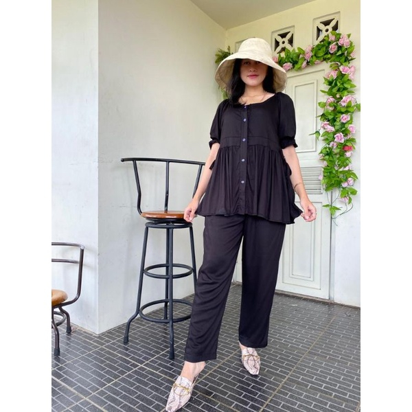 ONE SET POPPY MAT RAYON TWILL PREMIUM SIZE S M L XL XXL SETELAN CELANA WANITA SETCEL CANTIK UKURAN KUMPLIT KECIL NORMAL BESAR GEDE BIG JUMBO OVERSIZE WARNA KEKINIAN ADEM LEMBUT BERKUALITAS LD 92 98 104 110 120 MAX BB 80 FASHION SIMPLE ANGGUN OUTFIT