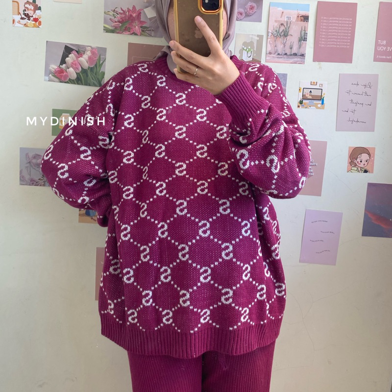 Detail One Set Senny - Stelan Rajut Wanita Motif Huruf S