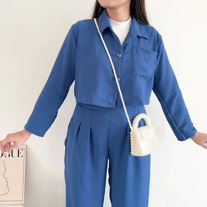 Detail One set Crinkle Setelan Crop top Blezer - one set wanita kekinian YPD