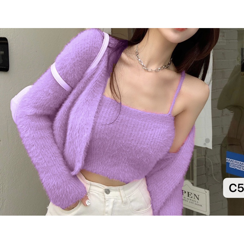 Detail ONE SET TOP KNIT OUTER WANITA ATASAN BULU IMPORT MX729