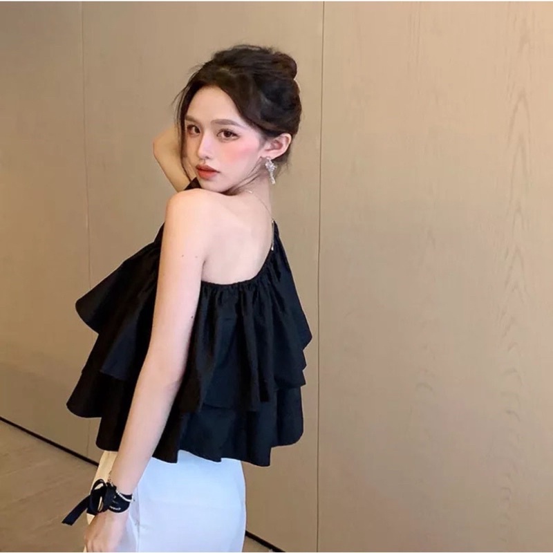 Detail One shoulder ruffle top / clara one shoulder top / bigsize top ruffle