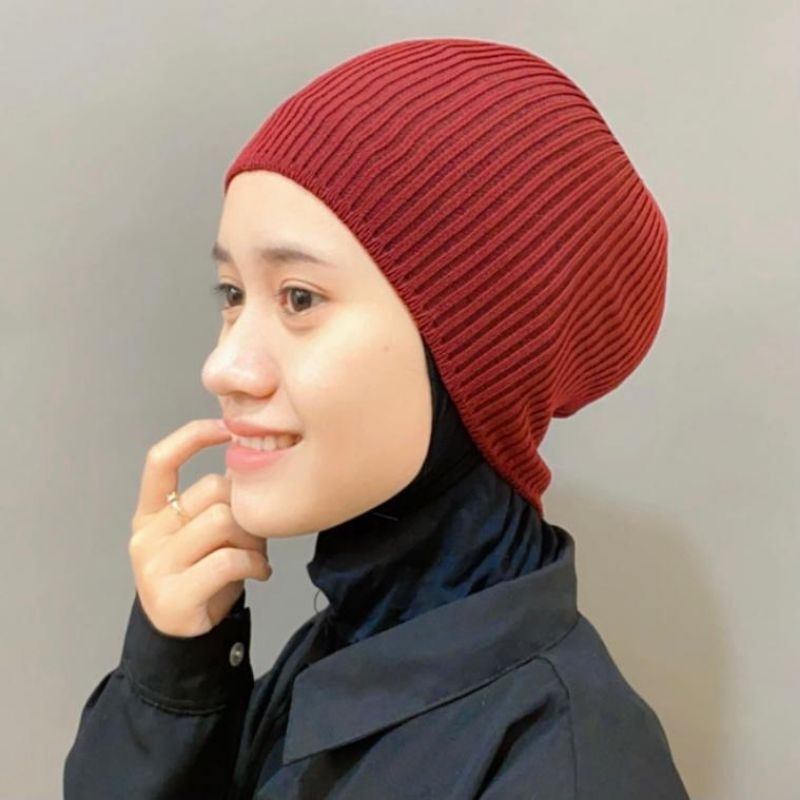 one tone 1 pattern Ciput Salur Bandana Rajut daleman jilbab dalaman hijab anti pusing ikat kepala