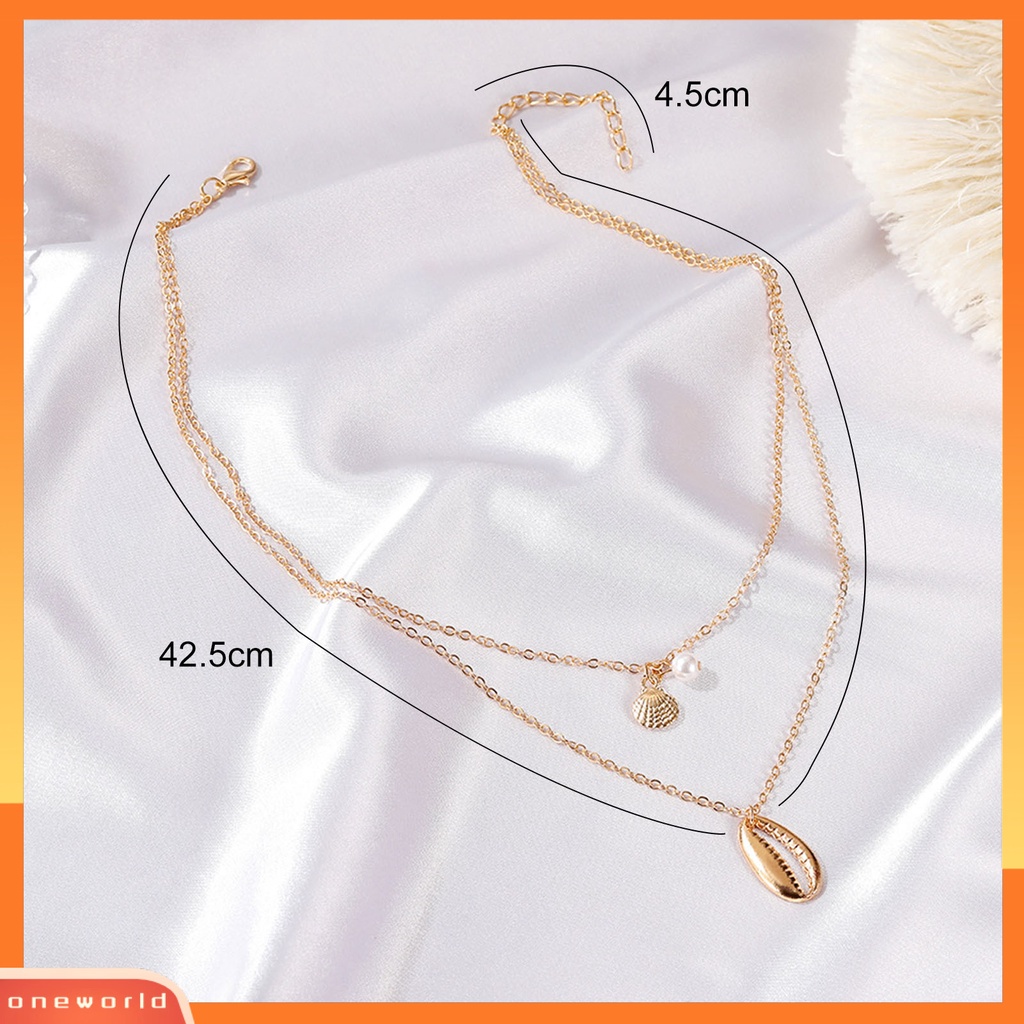 Detail [ONE] Wanita Alloy Mutiara Imitasi Shell Liontin Manik-Manik Rantai Double Layer Choker Kalung Untuk Pesta
