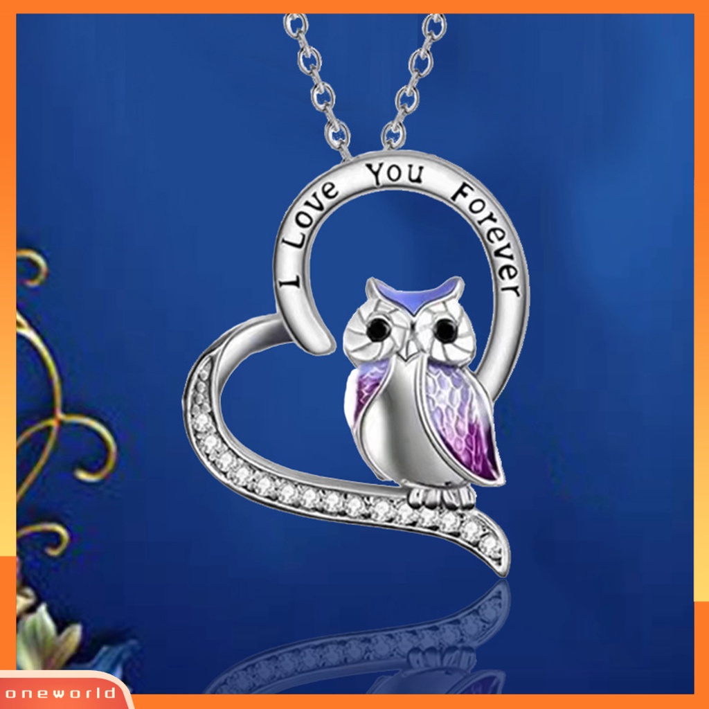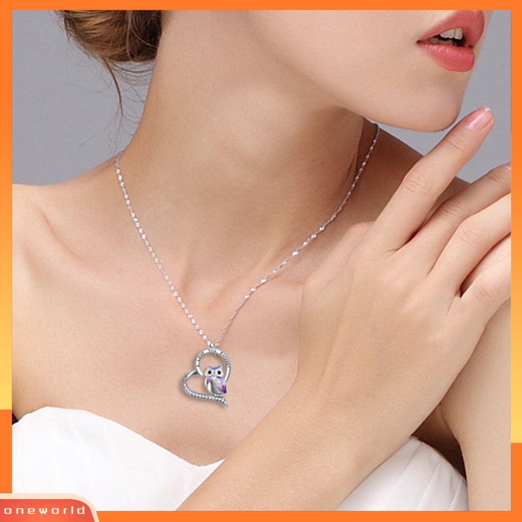 Detail [ONE] Wanita Kalung Bentuk Hati Dress Up Perhiasan Patung Burung Hantu Kilau Cerah Kalung Fashion Hadiah
