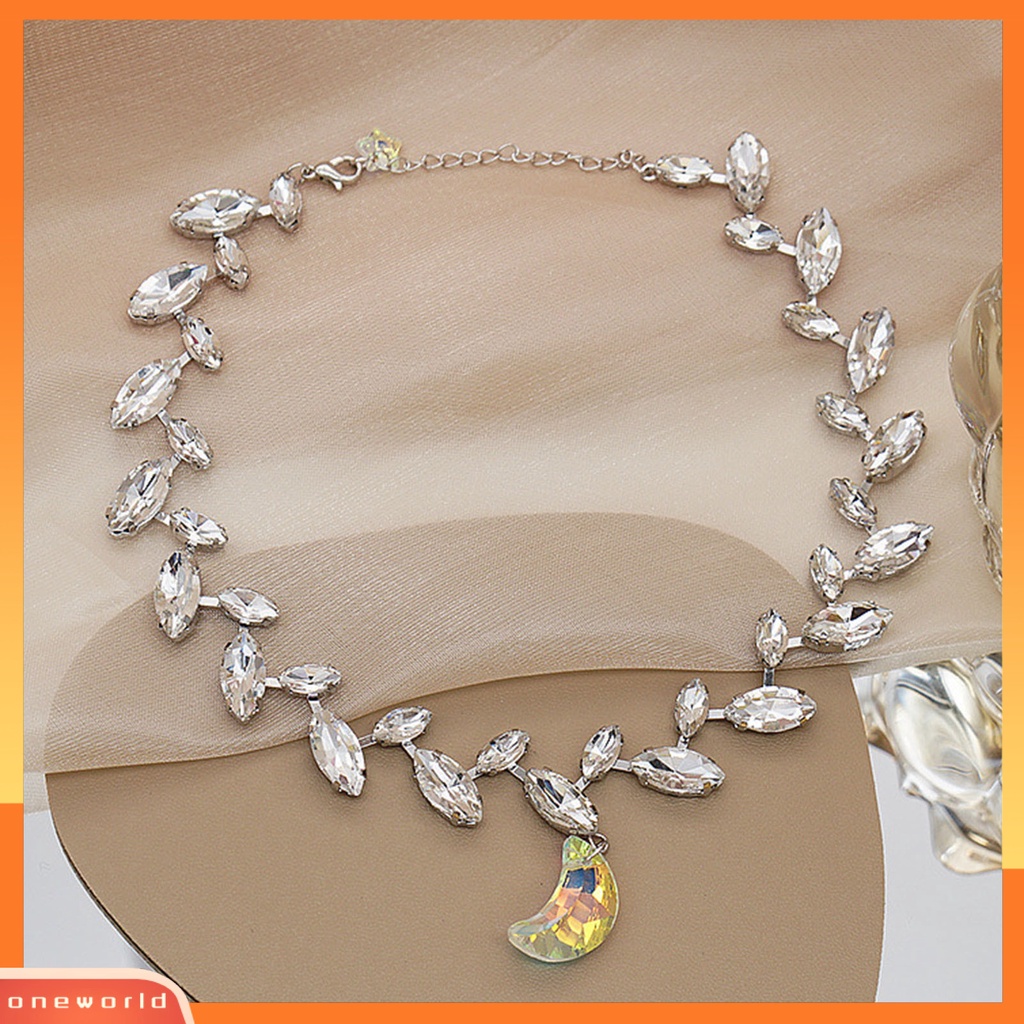 Detail [ONE] Wanita Kalung Bulan Berlian Imitasi Rantai Perhiasan Berlebihan Shiny Choker Necklace Jewelry Hadiah