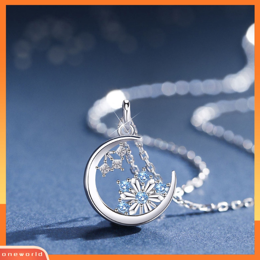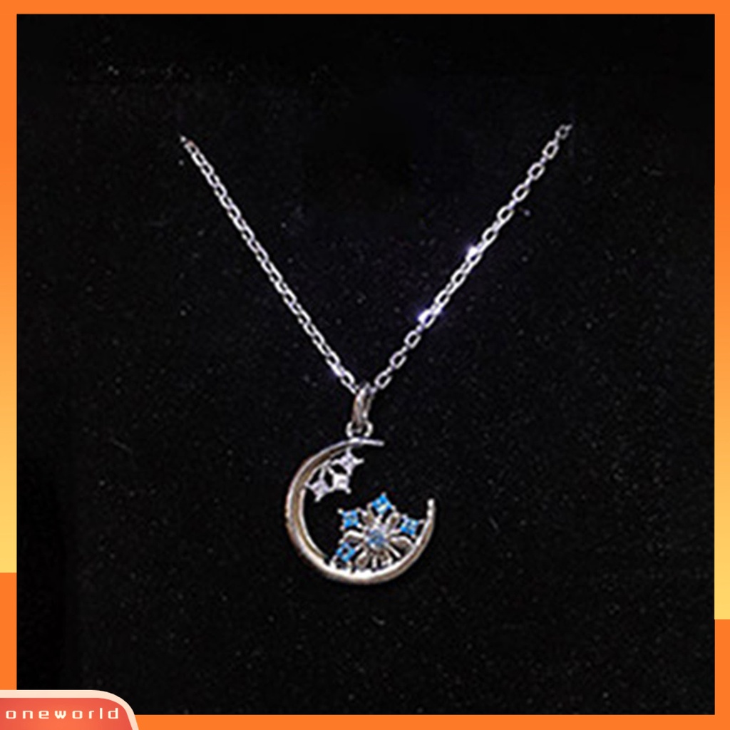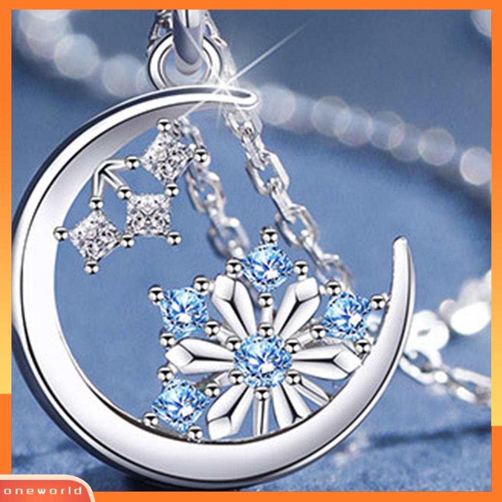 [ONE] Wanita Kalung Bulan Snowflake Berlian Imitasi Gaya Korea Sederhana Tahan Aus Liontin Kalung Perhiasan Hadiah