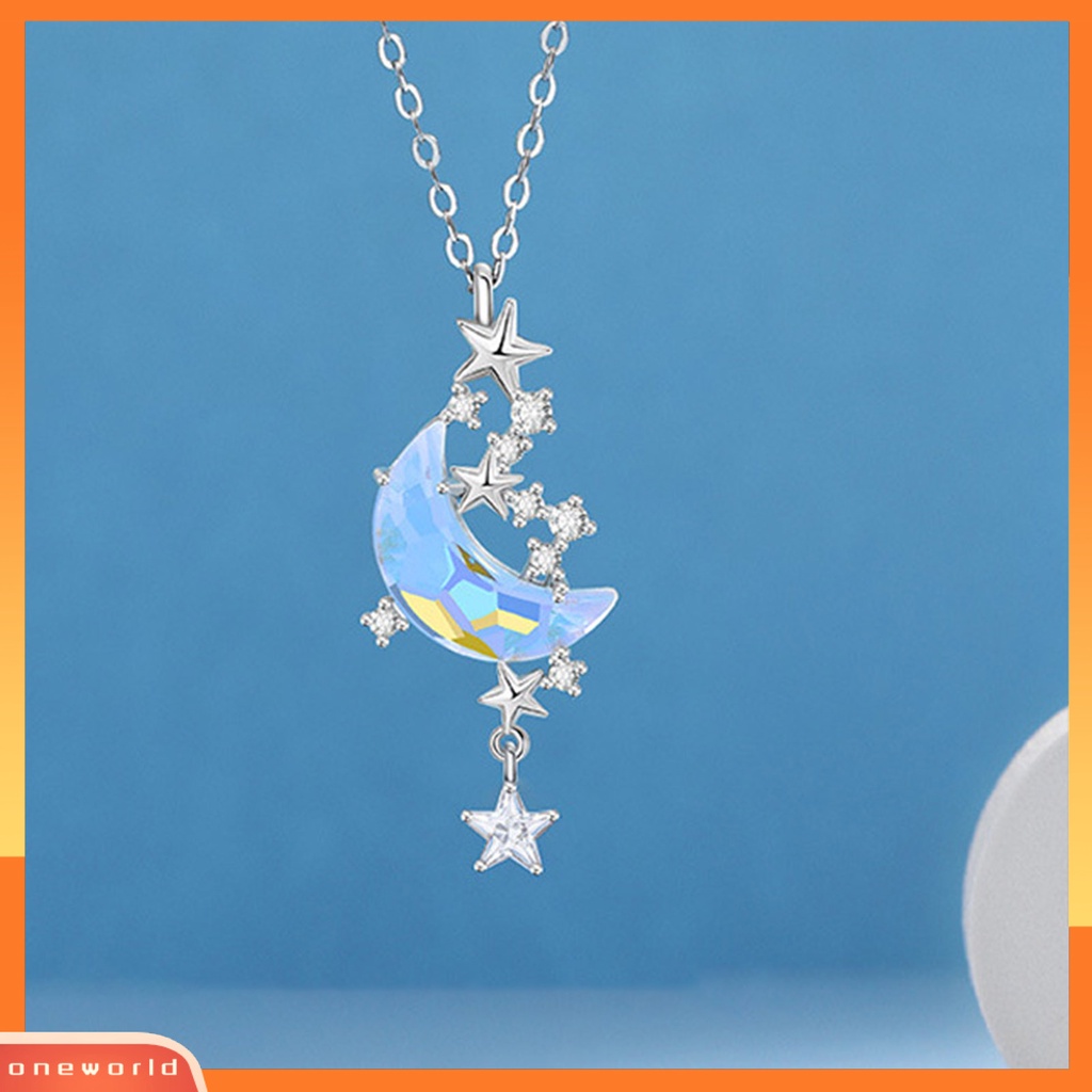 Detail [ONE] Wanita Kalung Bulan Bintang Berlian Imitasi Perhiasan Sederhana Halus Liontin Kalung Perhiasan Hadiah