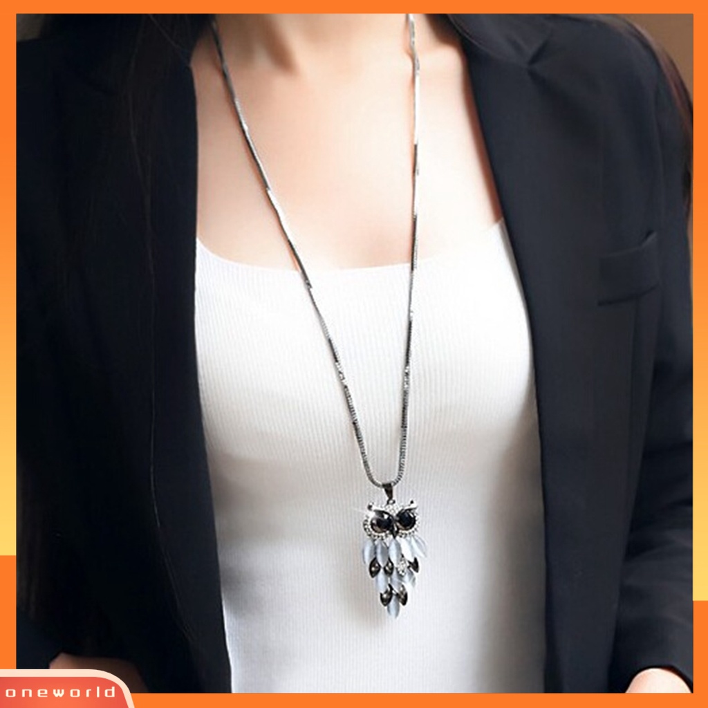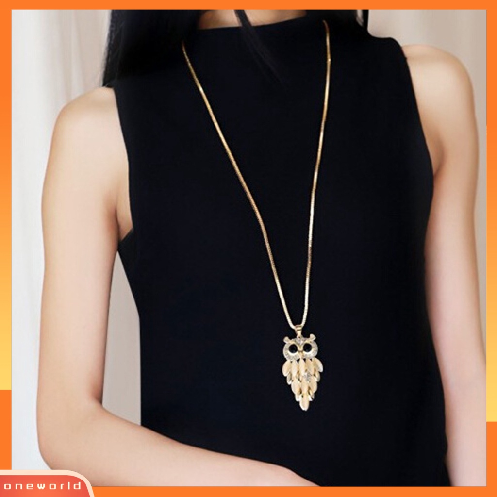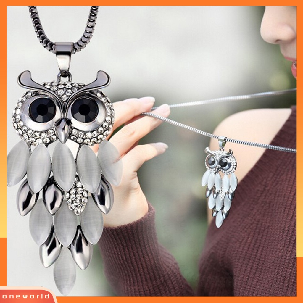 Detail [ONE] Wanita Kalung Indah Berlian Imitasi Burung Hantu Liontin Vintage Leher Rantai Panjang Sweater Kalung Aksesoris Fashion Perhiasan