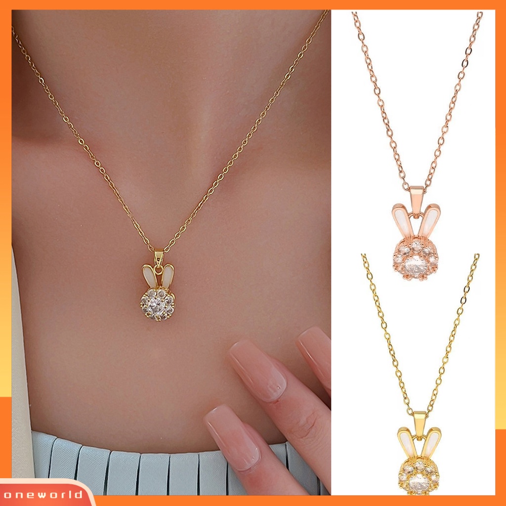 Detail [ONE] Wanita Kalung Kelinci Yang Dapat Diputar Elegan Dainty Golden Slim Rantai Hadiah Mewah Berlian Imitasi Bertatahkan Kelinci Liontin Kalung Fashion Perhiasan
