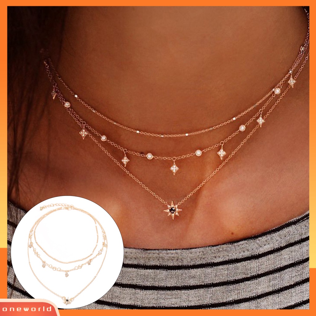 Detail [ONE] Wanita Kalung Multilayer Bintang Perhiasan Dapat Disesuaikan Tiga Lapisan Kalung Hadiah Ulang Tahun