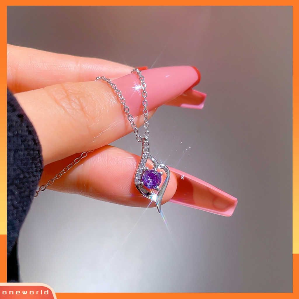 Detail [ONE] Wanita Kalung Shiny High-end Belah Ketupat Bentuk Ungu Berlian Imitasi Berongga Keluar Pernikahan Liontin Perjamuan Perhiasan