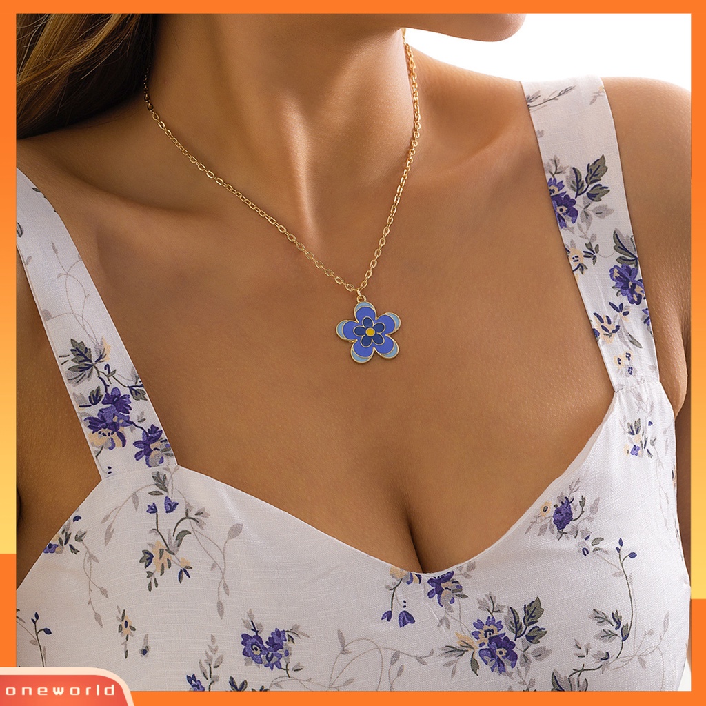 [ONE] Wanita Kalung Warna-Warni Liontin Bunga Klavikula Vintage Kilau Cerah Floral Necklace Untuk Festival